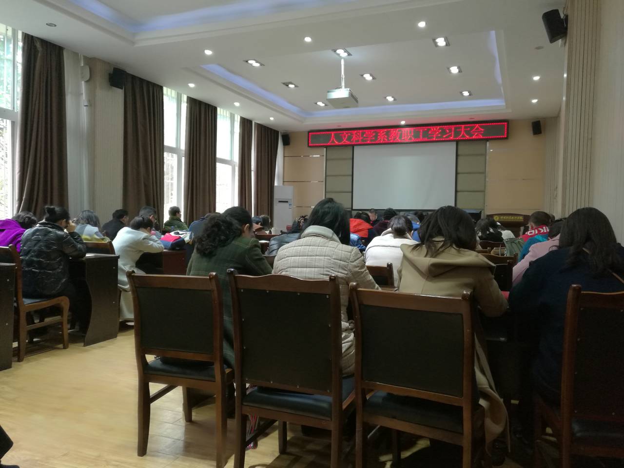 3月10日下午,人文科学系在实验楼一楼会议室召开了学习大会,全体教职工参加会议。系党总支书记、系主任杨富主持会议。